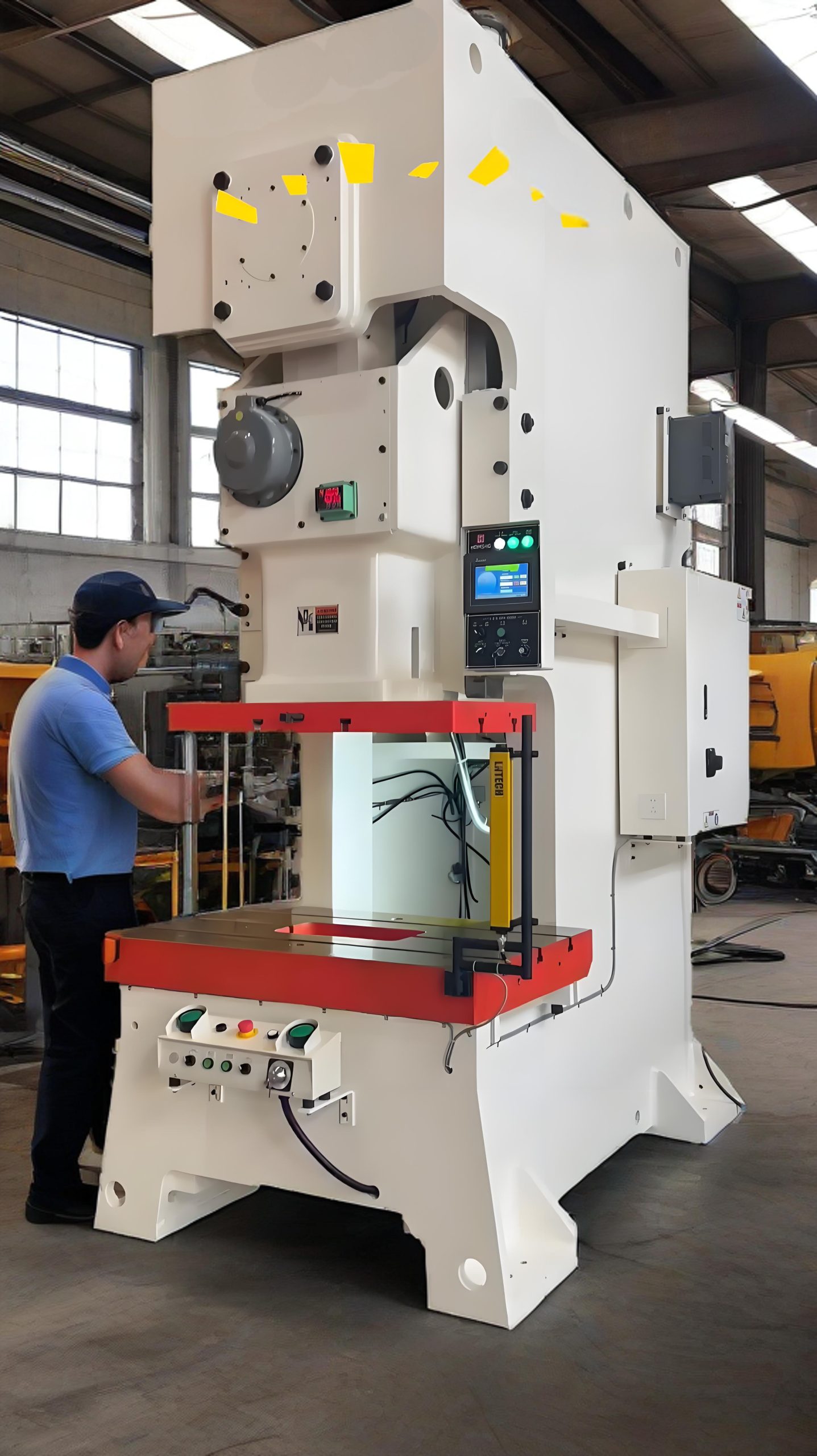 it ultimately commands pneumatic solenoid valves and motors to achieve automated, precise, and safe control of the punch press.